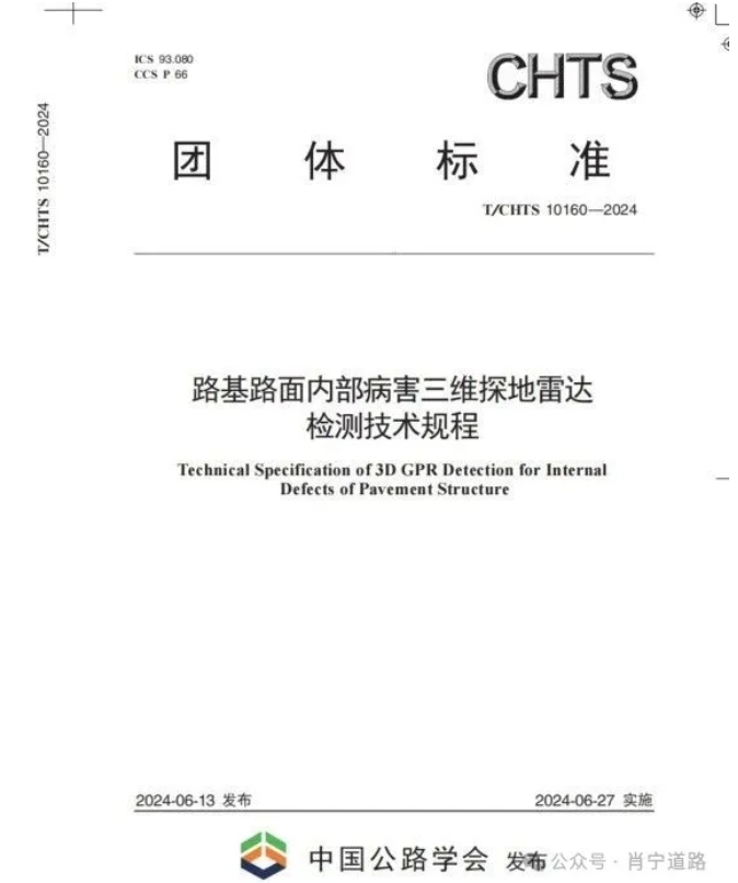 近日,肖宁道路参编的广东省土木建筑学会团体标准《城镇排水降噪沥青路面设计施工及保养技术指南》(T/GDJSKB 024-2024,T/GDSCEA 007-2024)和中国公路学会团体标准《路基路面内部病害三维探地雷达检测技术规程》(T/CHTS 10160-2024)等两项团体标准,分别经广东省土木建筑学会和中国公路学会批准发布。