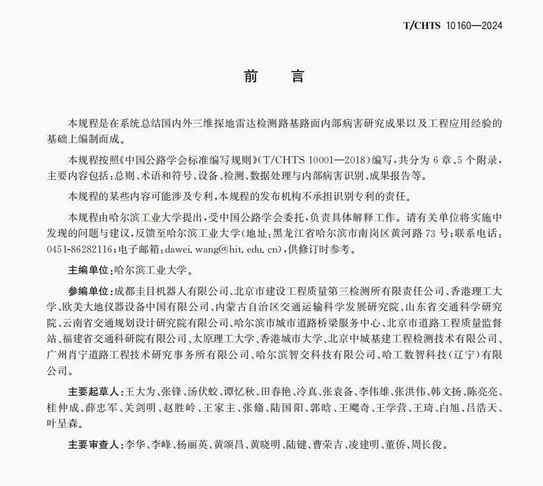 本规程是我国首个公路路面应用探地雷达进行路面结构和内部状况检测与定量化评价的技术标准,规定了三维探地雷达公路路基路面检测的设备、检测程序、数据分析等要求,适用于各等级公路路基路面结构层厚度、脱空、含水和含冰程度、裂缝等内容检测,对于三维探地雷达在公路结构病害检测领域的应用,以及解决缺乏规范化、标准化的评价方法等问题都具有重要的理论和实践意义。